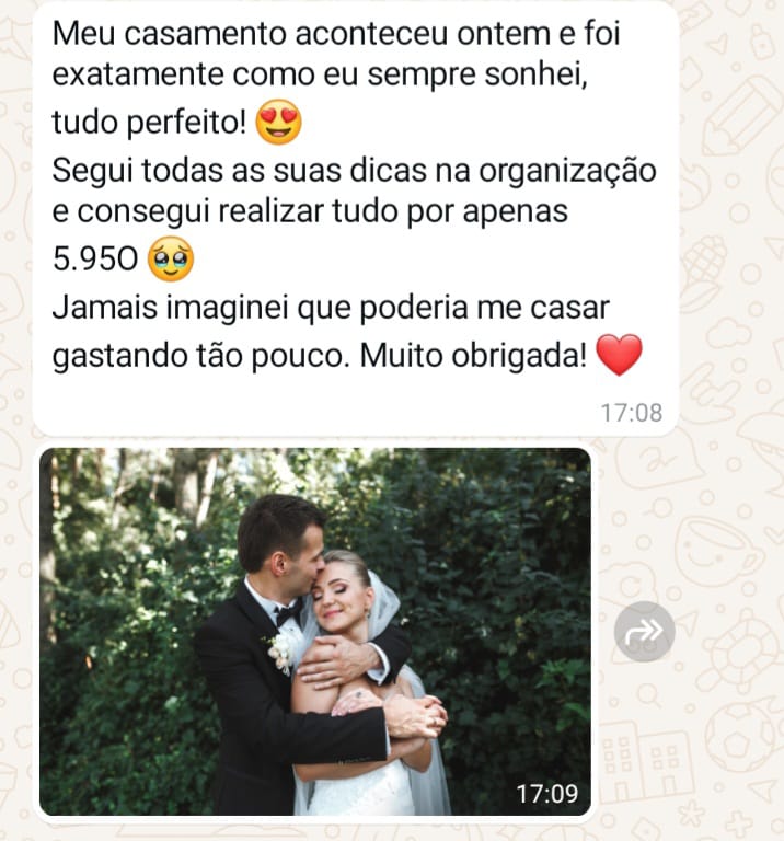 Esse é o MESMO método que eu e minhas noivas utilizamos para realizar casamentos dos sonhos gastando menos de R$ 7.000.