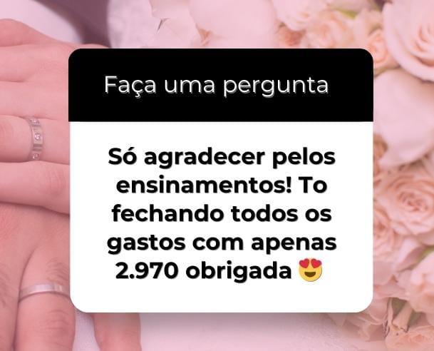 Não posso prometer que você atingirá esse valor exato, mas posso garantir que terá acesso aos segredos testados e validados por mim e por inúmeras noivinhas que economizaram sem abrir mão da qualidade.